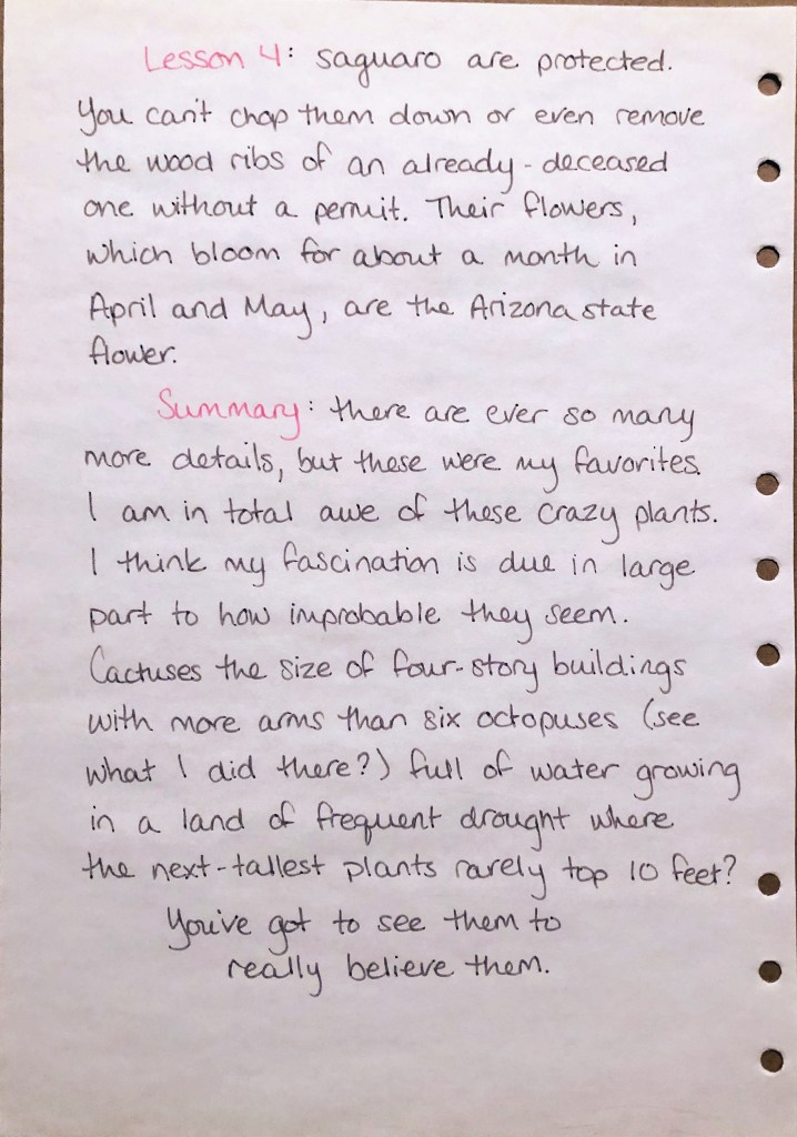 Summary: there are ever so many more details, but these were my favorites. I am in total awe of these crazy plants. I think my fascination is due in large part to how improbable they seem. Cactuses the size of four-story buildings with more arms than six octopuses (see what I did there?) full of water growing in a land of frequent drought where the next-tallest plants rarely top 10 feet?