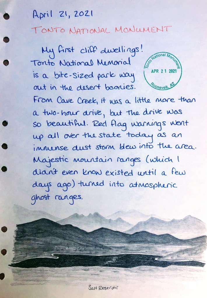 My first cliff dwellings! Tonto National Memorial is a bite-sized park way out in the desert boonies. From Cave Creek, it was a little more than a two-hour drive, but the drive was so beautiful. Red flag warnings went up all over the state today as an immense dust storm blew into the area. Majestic mountain ranges (which I didn’t even know existed until a few days ago) turned into atmospheric ghost ranges.