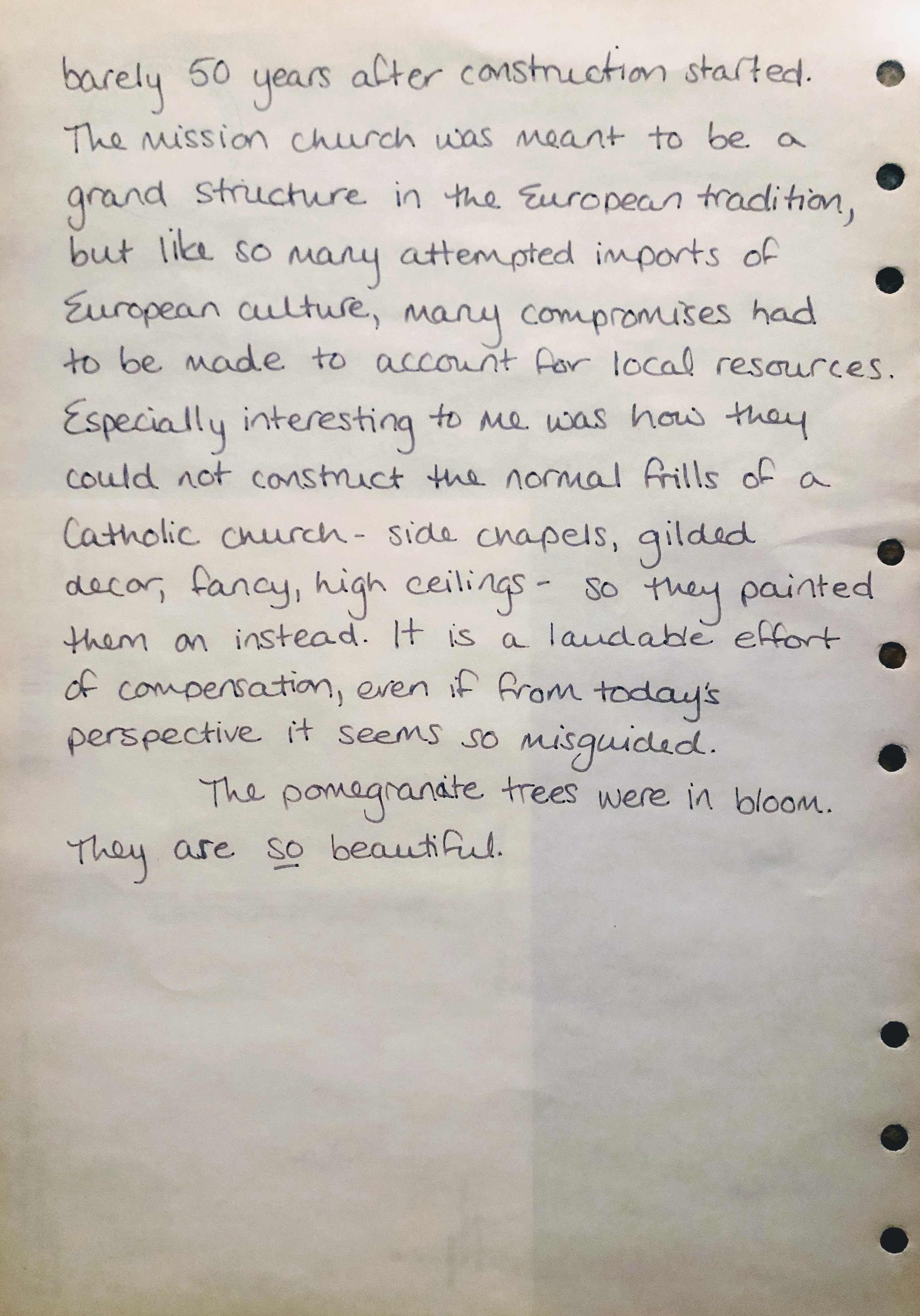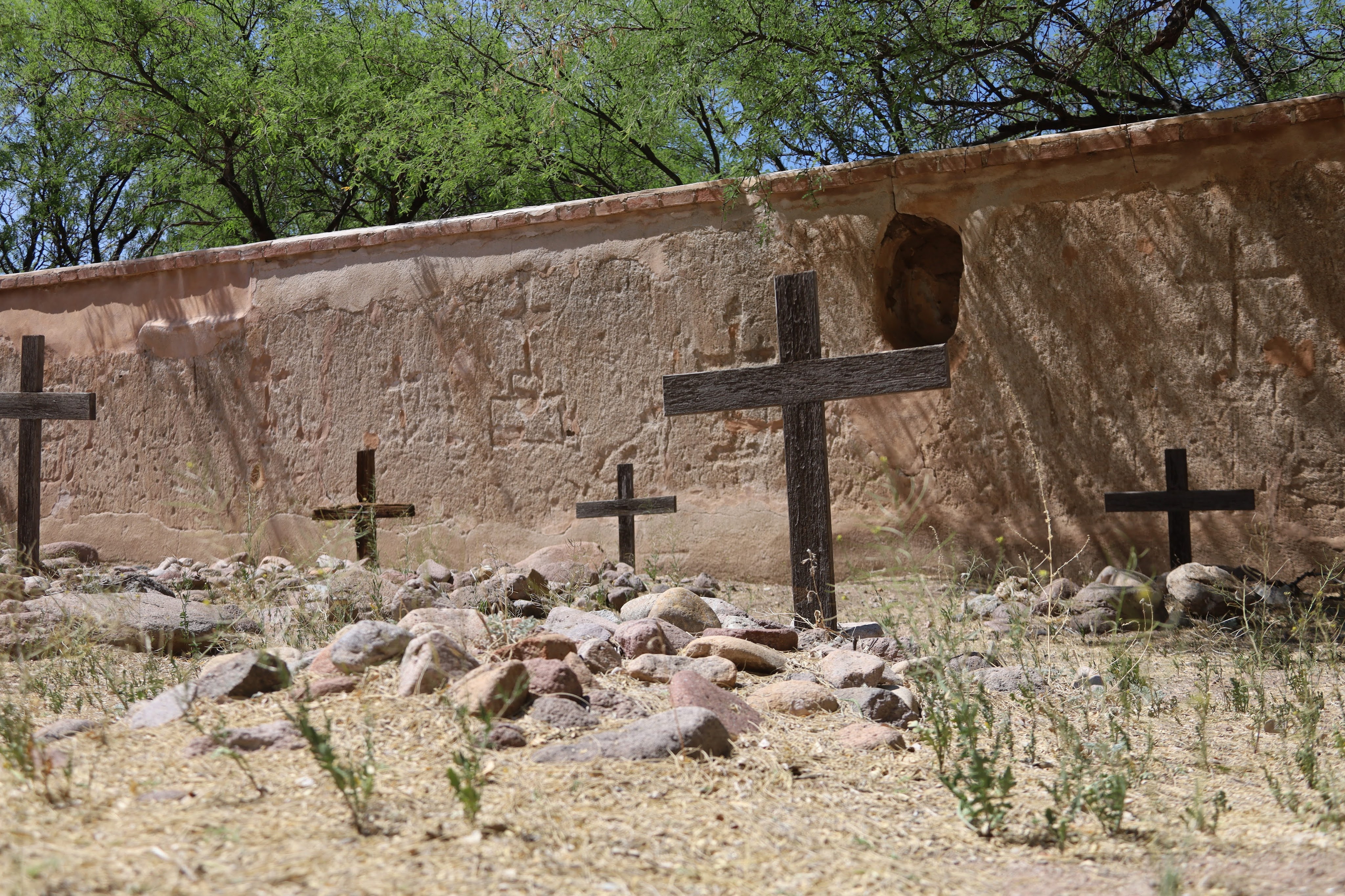 We drove so far south to reach this site that we could have tossed a frisbee into Mexico. The mission at Tumacácori NHP was established long before that border existed. Even before 1700, Spanish missionaries roamed the Sonoran desert looking to establish Christianity and the Spanish way of life among the indigenous people. The building as it appears today wasn’t built until the early 1800s and was abandoned at the end of the US Mexican War, barely years 50 after construction started. The mission church was meant to be a grand structure in the European tradition, but like so many attempted imports of European culture, many compromises had to be made to account for local resources. Especially interesting to me was how they could not construct the normal frills of a Catholic church – side chapels, gilded décor, fancy high ceilings – so they painted them on instead. It is a laudable effort of compensation, even if from today’s perspective it seems so misguided.