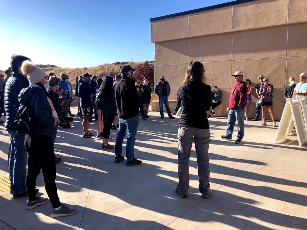 We turned up at the Kanab Community Center Gymnasium at 8:30, as instructed, where a scruffy dude was informing crowd of a couple hundred people that it was not his fault so few people could go (“write to your senators!”) and that really, there are much better hikes.