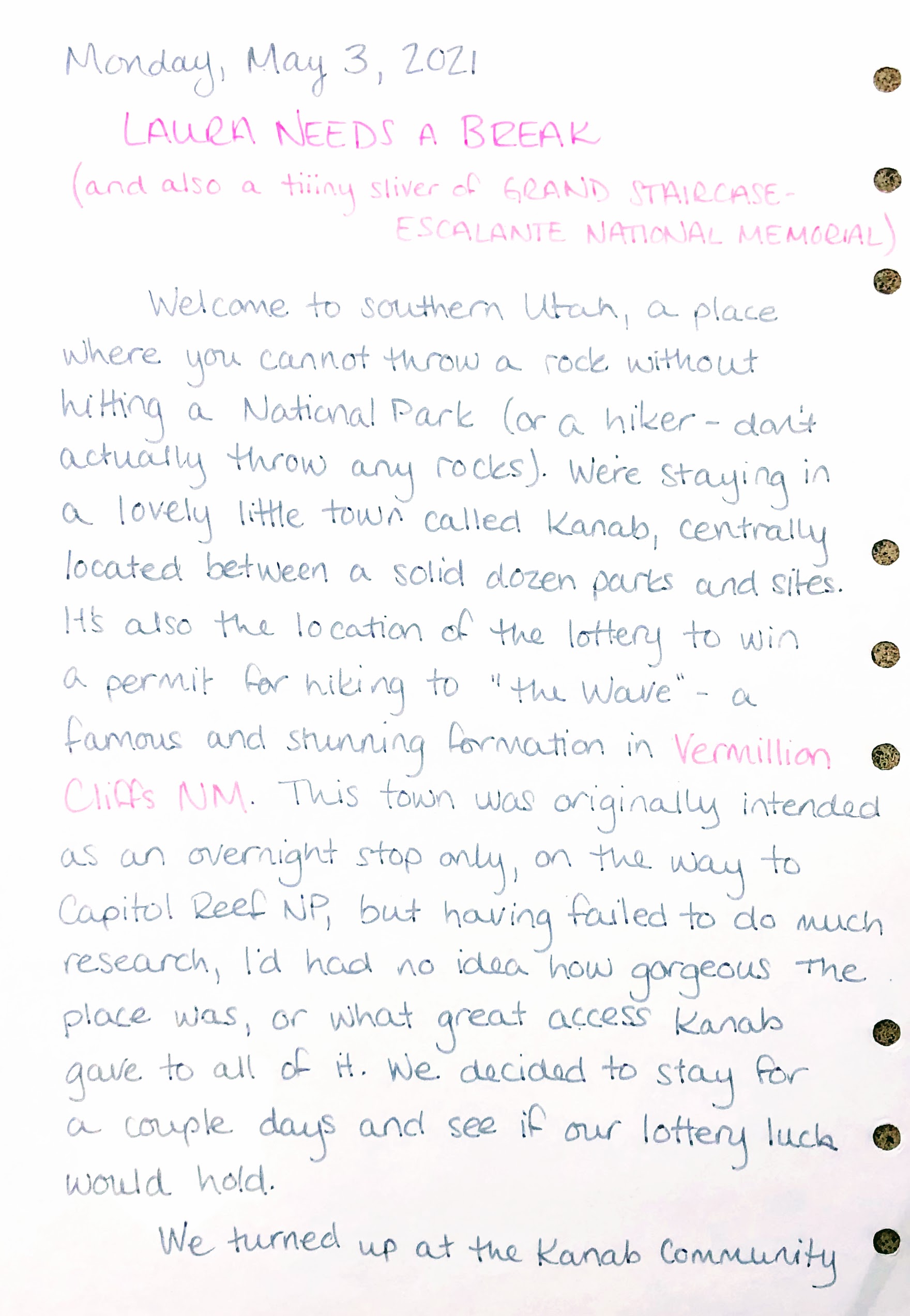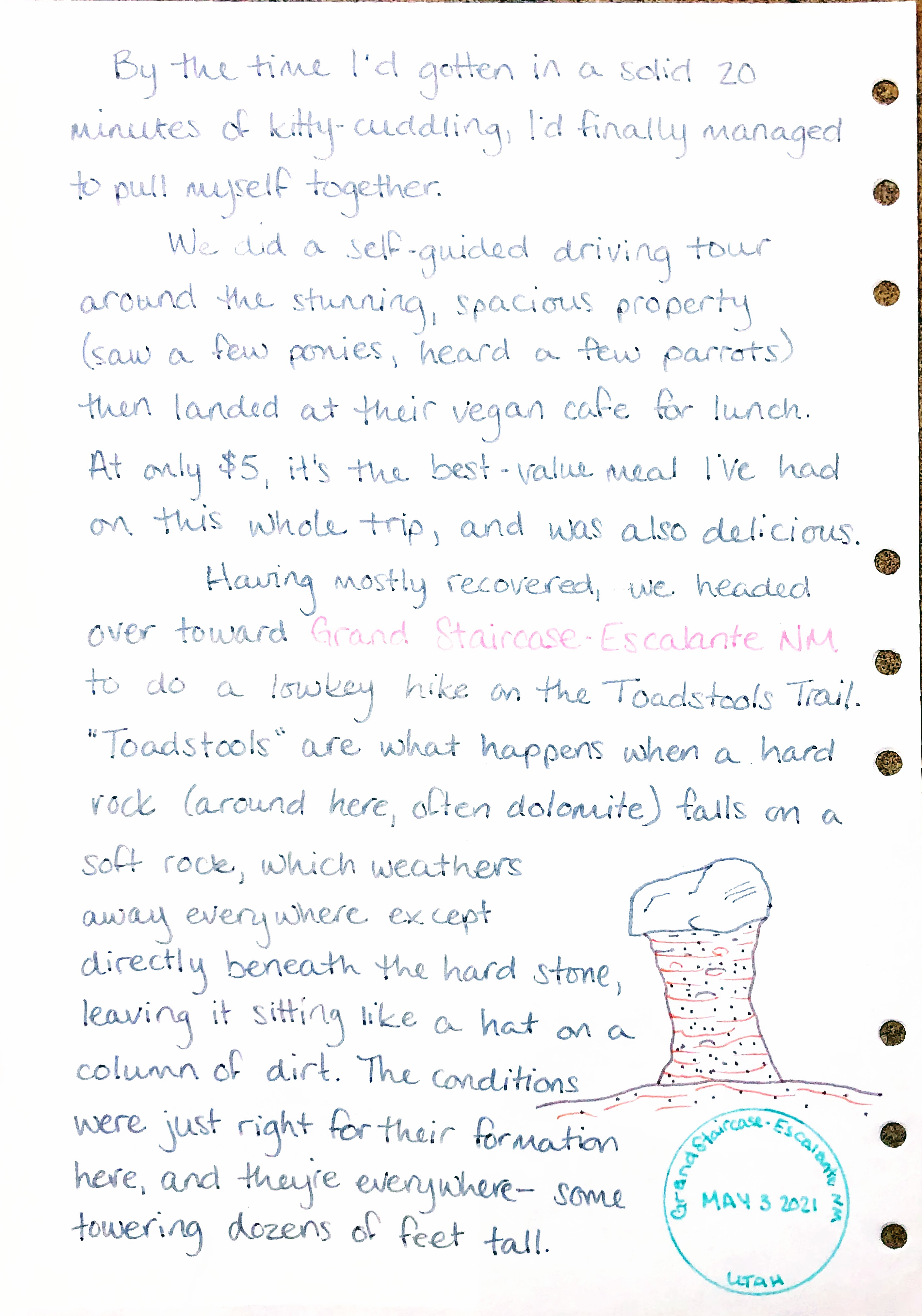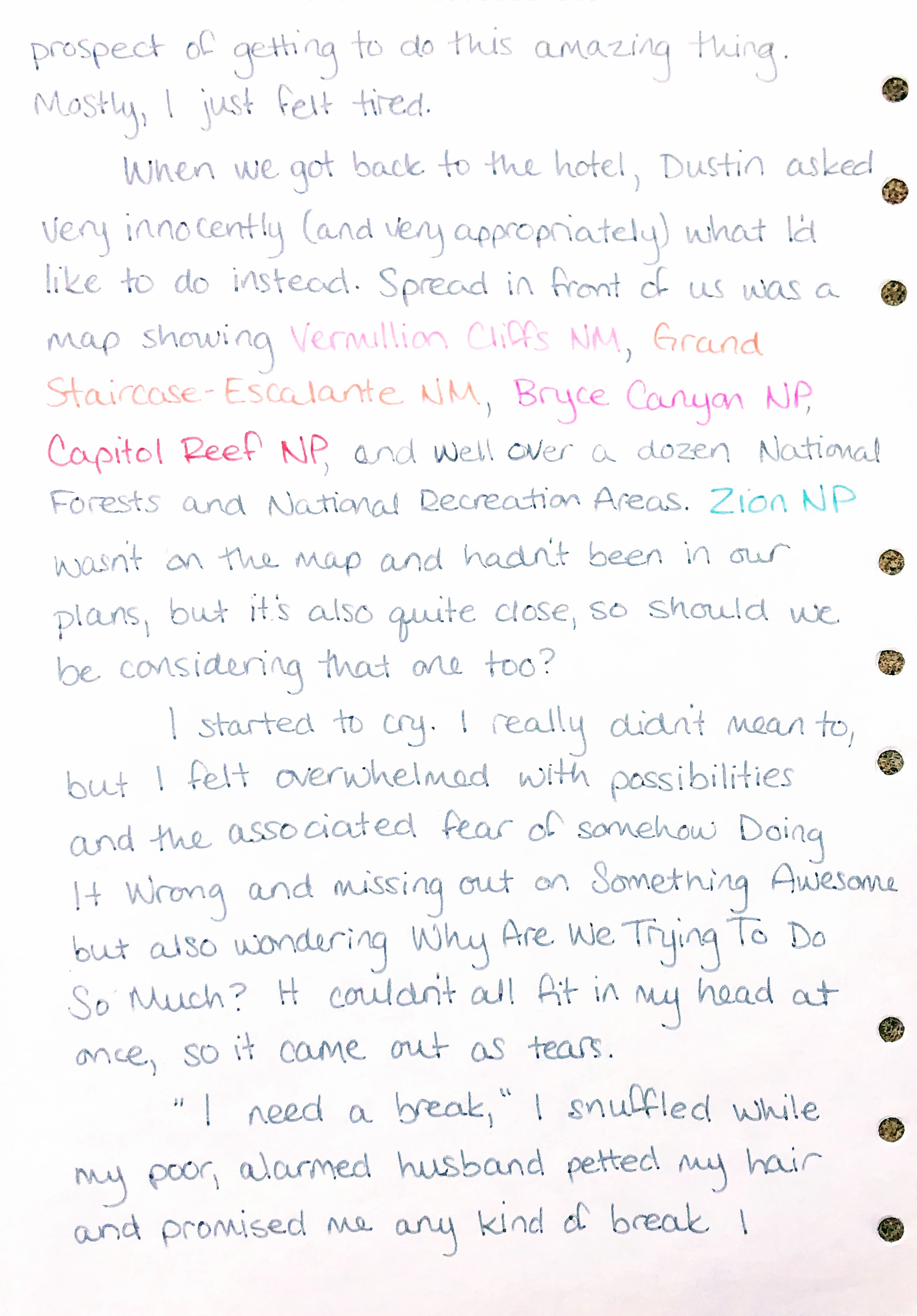 I guess I kind of ran out of steam (and page) at this point and that’s the end? In any case: the wild rocks at Grand Staircase were balm to my soul and I finished the day in a much calmer state than I’d begun in.