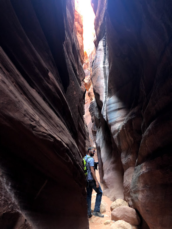 At points along the trail, the walls above us were 200 feet high, and even though we did all of the hike during day’s middlest hours, in most cases no sunlight reached the bottom.