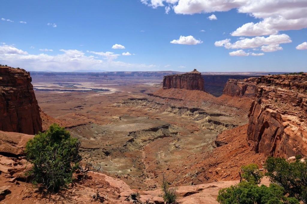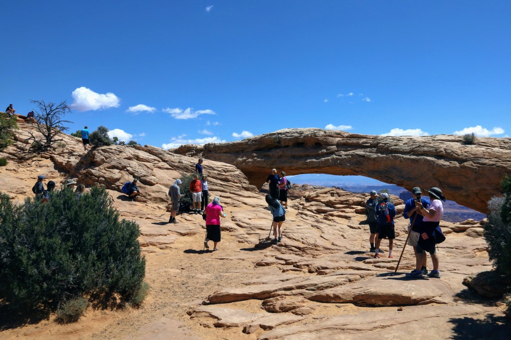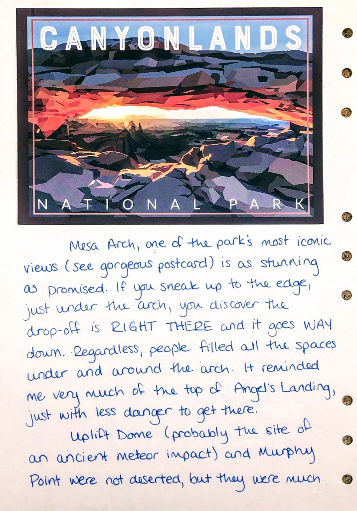 Mesa Arch, one of the park’s most iconic views (see gorgeous postcard) is as stunning as promised. If you sneak up to the edge, just under the arch, you discover the drop-off is RIGHT THERE and it goes WAY down. Regardless, people filled all the spaces under and around the arch. It reminded me very much of the top of Angel’s Landing, just with less danger to get there.