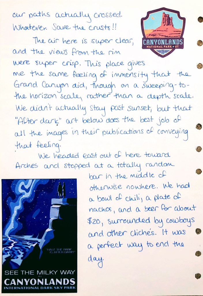 * I actually drafted this journal entry several days after the 8th. My memory failed me as I e actually stopped at this bar – Duke’s Slickrock Grill in Hanksville – the evening we visited Capitol Reef, the day BEFORE this. Oops. I also tried publishing the Capitol Reef post with several of the Canyonlands photos, which is one of the hazards of visiting so many amazing parks in such a short time. If you think you saw some of the below photos before, you’re not wrong. The record has since been straightened.