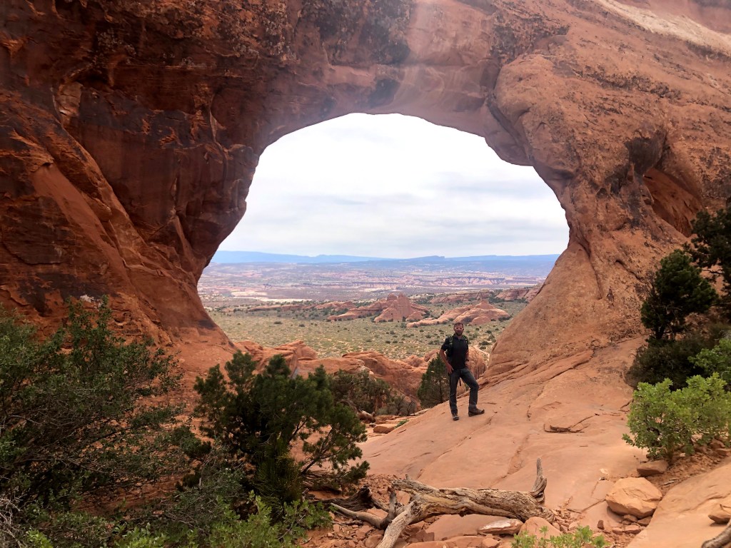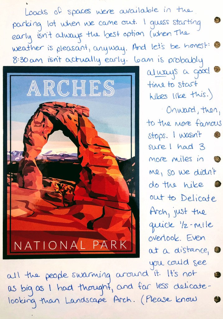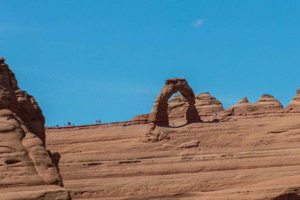 Onward, then, to the more famous stops. I wasn’t sure I had 3 more miles in me, so we didn’t do the hike out to Delicate Arch, just the quick 1/2-mile overlook. Even at a distance, you could see all the people swarming around it. It’s not as big as I had thought, and far less delicate looking than Landscape Arch. (Please know I say this as a fan of Landscape Arch, not as a critic of Delicate Arch which is still, of course, amazing.)