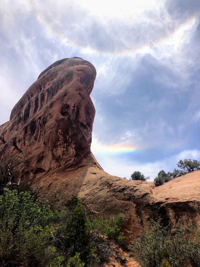 On the Devil’s Garden Trail, I decided play a game called “let’s count the arches!” There are over 2,000 arches in this park. I didn’t learn until after the hike that an arch must [have an opening of] at least 3 feet (in any direction) to be officially counted, so a few of the 25 I spotted may not qualify. Eight of these arches have names and dedicated trail spurs. I can 100% vouch for 3 additional arches we spotted. I’ll admit the rest are suspect, pending verification. It’s incredible how light and shadow can play tricks on your mind.