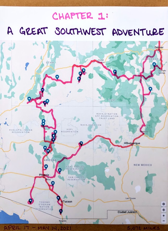 - National Parks visited: 10! (Petrified Forest, Saguaro, Grand Canyon, Zion, Bryce, Capitol Reef, Canyonlands, Arches, Black Canyon of the Gunnison, Great Sand Dunes)