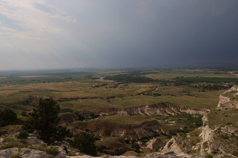 We did a short hike to visit the Daemonelix (“devil’s corkscrew”) fossils, then high-tailed it away in time to arrive at Scott’s Bluff National Monument before the Visitor’s Center closed (gotta get my stamps, you know.) Turns out you can drive to the tops of the bluffs, which provided a phenomenal view. It’s easy to understand why this was an important stop along the Oregon Trail.