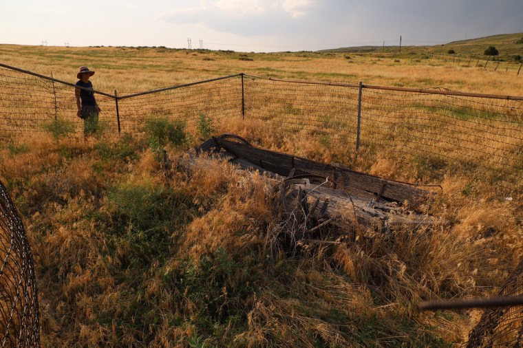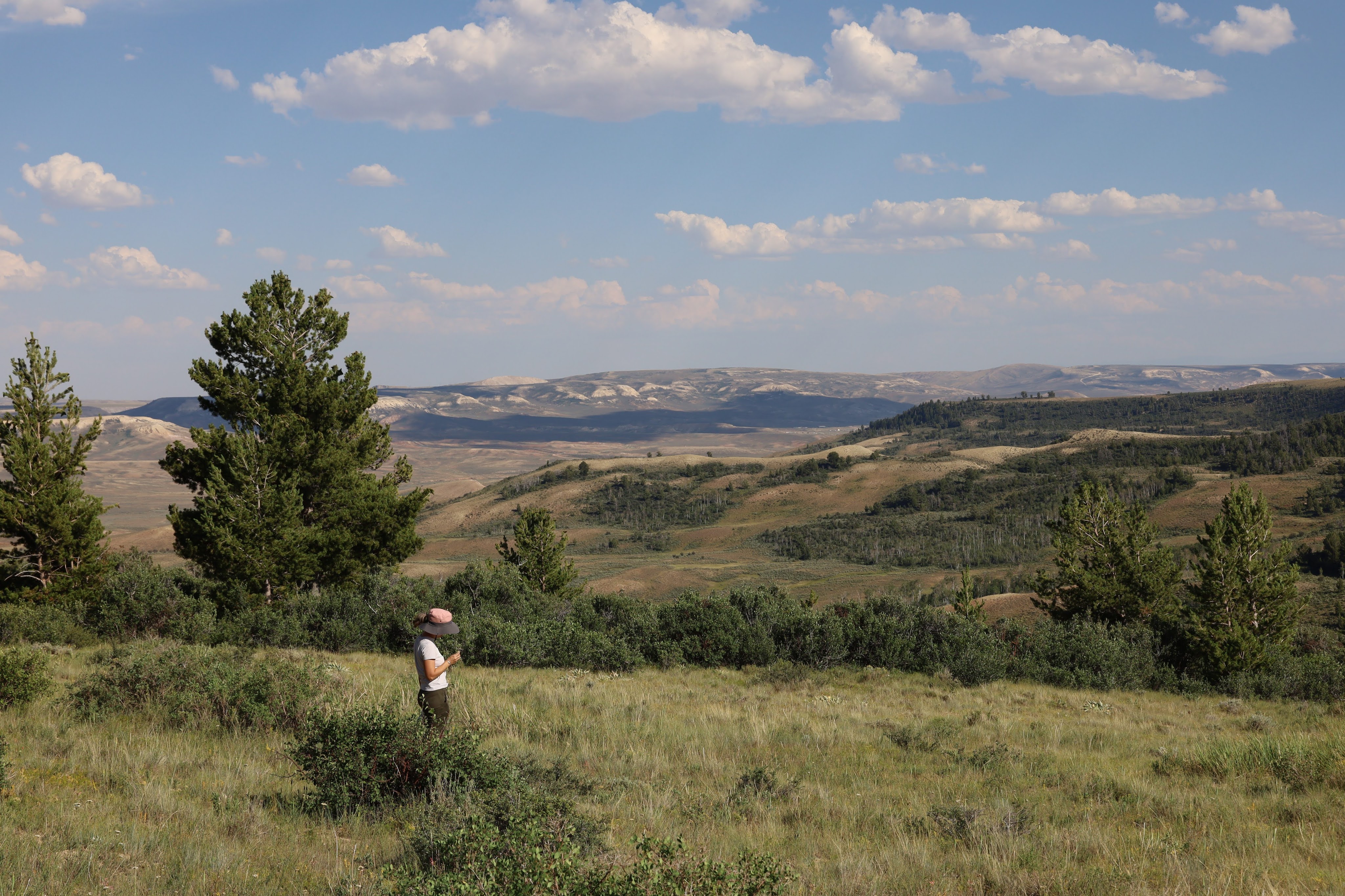 Having totally failed to spot any wagon tracks from the top of the bluffs, we headed east in search of some serious ruts. We found not just ruts but graves and broken-down wagons. We did not find dysentery.