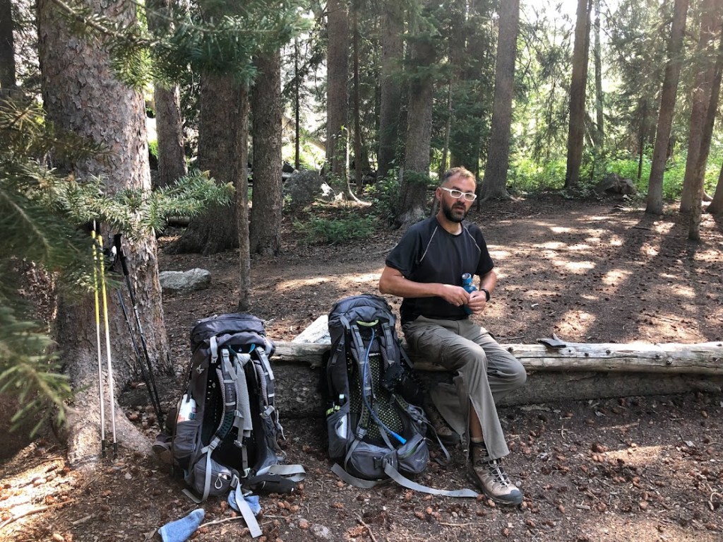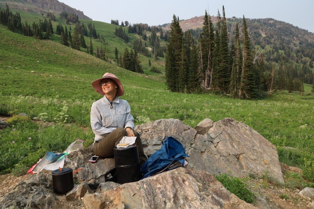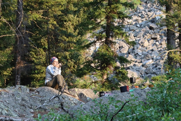 The air was crisp and fragrant with pine trees. A haze of smoke from far-off wildfires marred the blue sky, but with Granite Creek rushing by and birds chirping overhead, the scenery was a great improvement over the inside of the tent. I started working on morning tea.