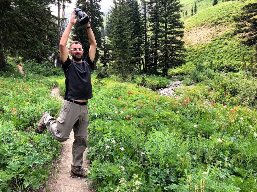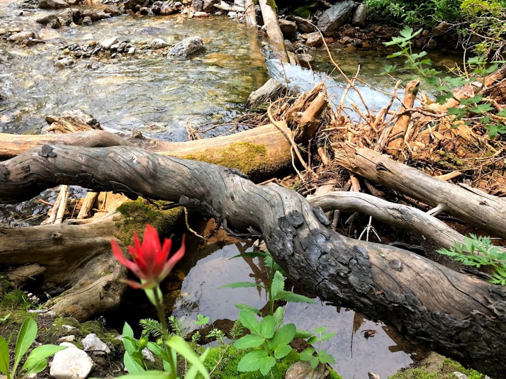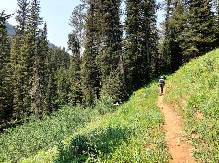 The hour was now only 3:00, and the day was still young. Unburdened by our massive packs, we decided to go on a scouting mission to see how far up the next trail junction was, and also to roll around in some wildflowers.