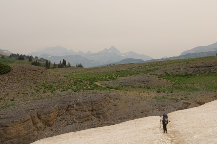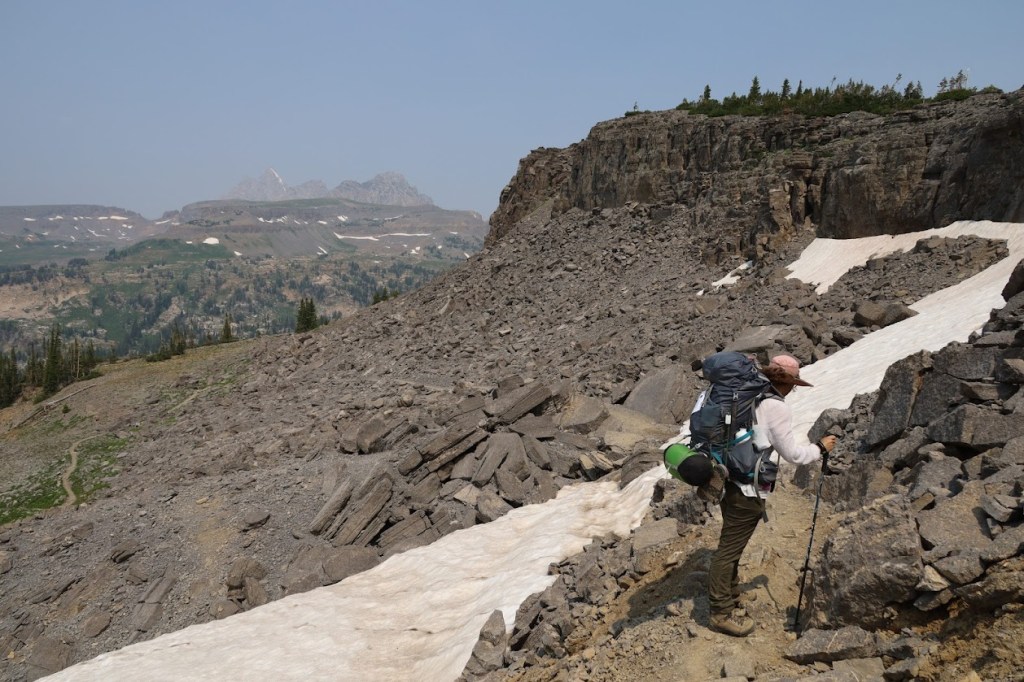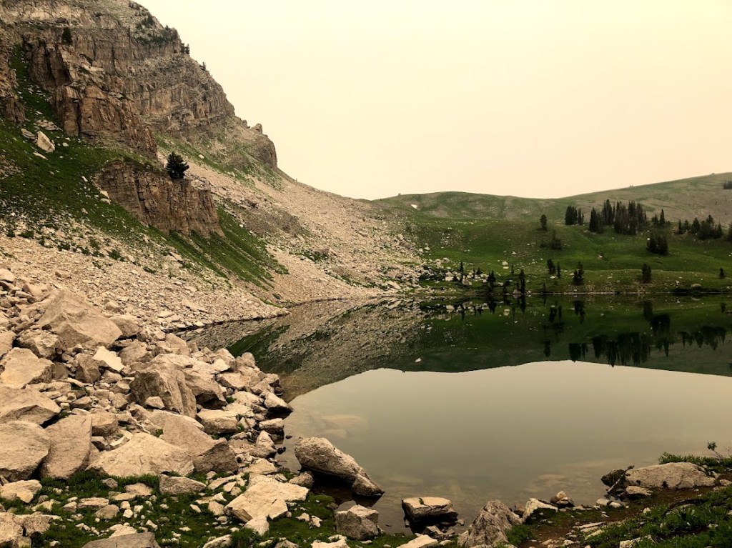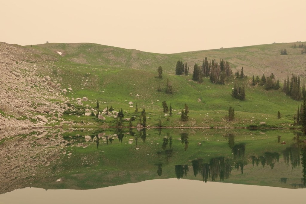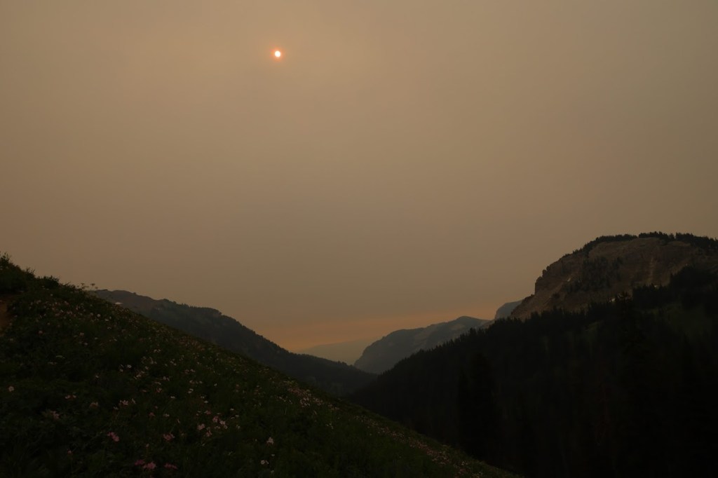 We returned to our breakfast then started dismantling our camp. Even knowing it might be ninety degrees later, we were ready for the sun to start warming our fingers and the day. The sky felt overcast, but was actually just choking on wildfire smoke that had rolled in extra thick during the night. At least it would make for a comfortable hiking temperature.