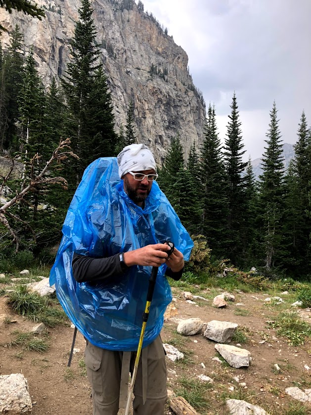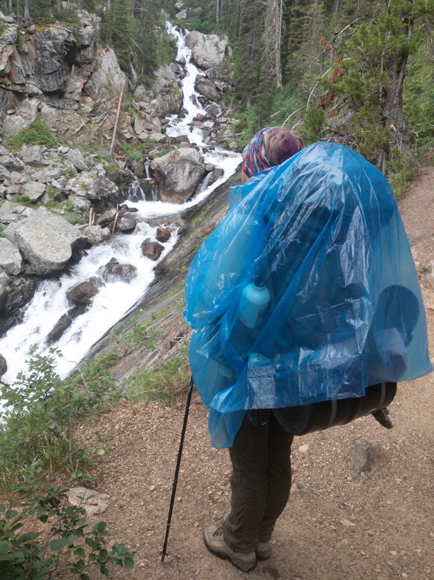 We decamped in record time. We draped our ponchos classily over ourselves and our enormous packs, making us look like badly wrapped leftovers. We plodded down the trail through fits and starts of rain. Once, when it had been dry for a solid half hour, we dared to the ponchos. Ten minutes later we regretted this decision, and left them on until the sun came out strong enough to start steaming us in our wrappings.