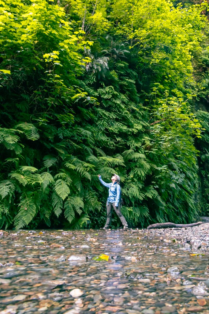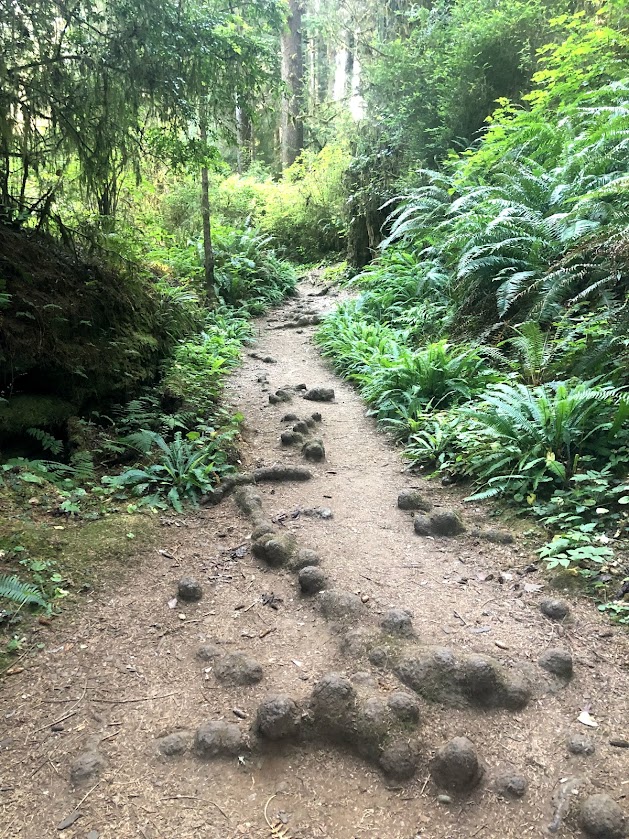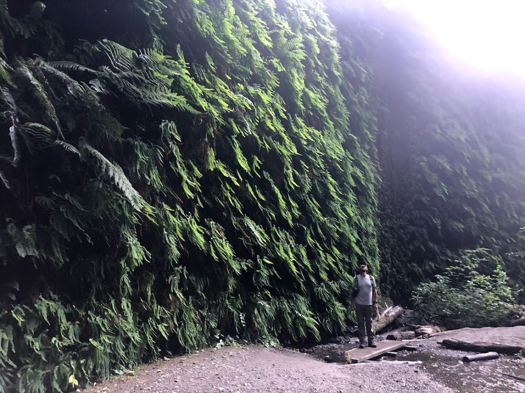 Can you spot the T-rex?Redwood roots are gnarly. They also make it really tricky to hike while staring at tree tops. GNARLY. Basal burls can make the redwoods look like sculptures, at times, and also aid in reproduction. New trunks – clones of the main tree – can sprout from a burl if the tree itself is threatened or stressed. Knotty.Treats are just growing along the trails!! It was full-blown blackberry season while we were there, but there were also currants, raspberries, salmonberries, and thimbleberries. Fern Canyon is one of the more famous hikes in the parks. Normally you would have to walk through water for the mile or so that travels through the canyon itself, but this photo is deceptive. Because it’s been such a dry year, we could have done the whole hike without getting our feet wet. The day was cool, so this was okay, but it’s a shame for the more obvious (environmental) reasons.Never thought of using ferns for wallpaper, did you?