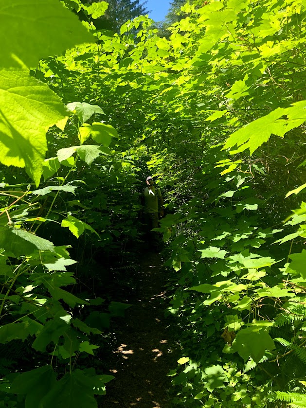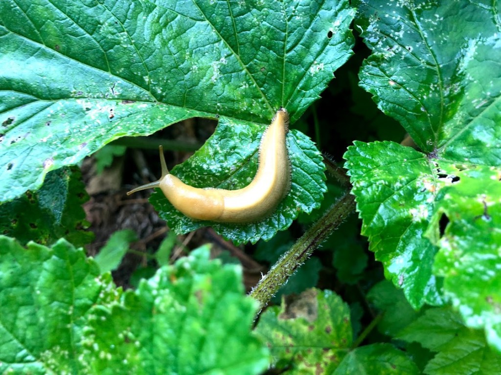 Fern Canyon is less than two miles if you do it alone, but we decided on a six mile loop. A bunch of the redwood pics from above are probably from the loop we did. It was gorgeous.Redwoods aren’t the only plants that grow stupid-tall out here. This is a twice-as-tall-as-Dustin thimbleberry forest. The big loop from Fern Canyon (NOT Fern Gully, say it with me) spits you out on a beach! By the time we arrived at the beach with 1.5 miles yet to go to the trailhead, we’d already hiked seven of the six expected miles. Because that’s how hikes go when I’m along. Let’s just say I wasn’t the most enthusiastic hiker for that last mile. I was here for the trees, not the waves.This is not a black and white photo. The road leading to the Fern Canyon trailhead was a white dirt road, and as a result everything along the road had also turned white from the dust. It looked like someone had sculpted the undergrowth from paper. Here’s what the undergrown usually looks like, and I adore it. Those three-leaf clovers are Redwood Sorrell. The undersides of the leaves are purple, and (like everything else around here) they’re huge: each heart-shaped leaf is about two inches wide. BANANA SLUG!! I think this dude was about five inches long? Banana slugs are super cool, and are mascots and gardeners of the redwoods. As little mobile garbage disposals, they are willing to eat absolutely anything other than redwood seeds, keeping the understory clear and providing excellent compost. Moving on to the Fallen Giants portion of our tour. It’s not common to see really giant redwoods simply downed, because most of the oldest growth trees were removed by loggers rather than nature. By the time the forests were protected as parks, a lot of the old-growth downfall had been cleared out. These monsters are in Stout Grove.