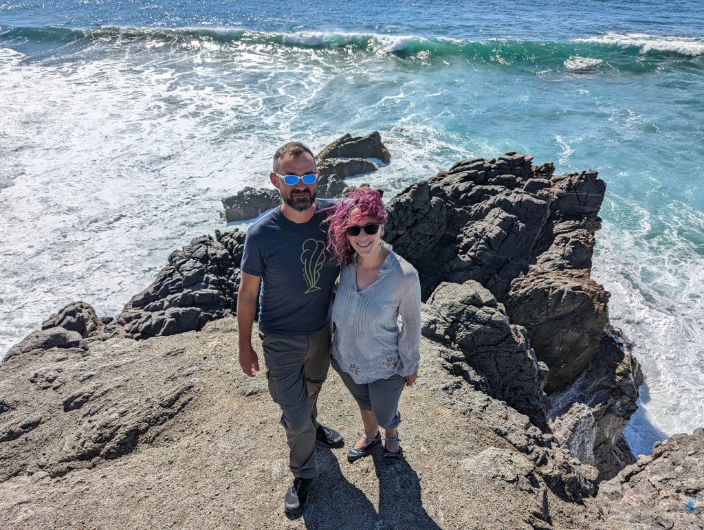 Educated and refreshed, we moved on to the hiking portion of our adventure. Danny drove us out to Punta Lobos. We marched across a lovely little beach and then started picking our way up the rocks onto the side of the cliffs. Danny’s AirBnB listing describes the hike as “moderate to advanced,” and notes that he can modify it to suit the abilities of his hikers. By the time we got up the cliff edge, my little hummingbird heart, which has been subjected to nothing more strenuous than house-painting since we came back from Glacier National Park in August, was rolling along at a solid 163bpm.