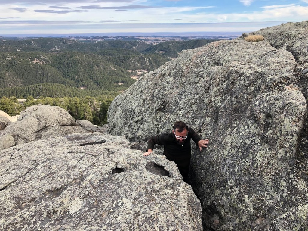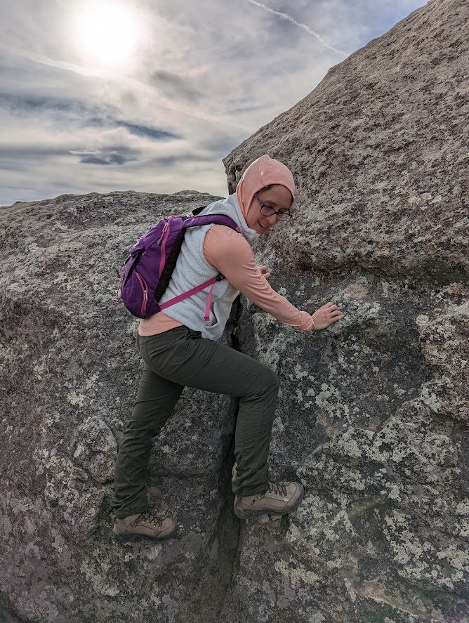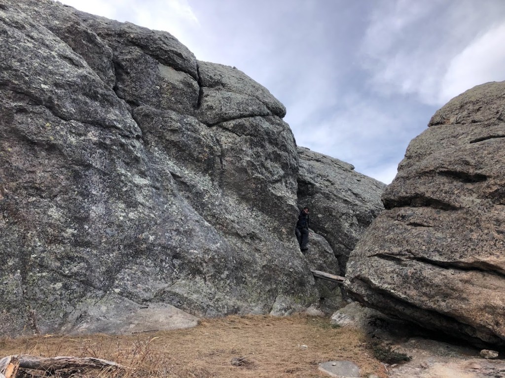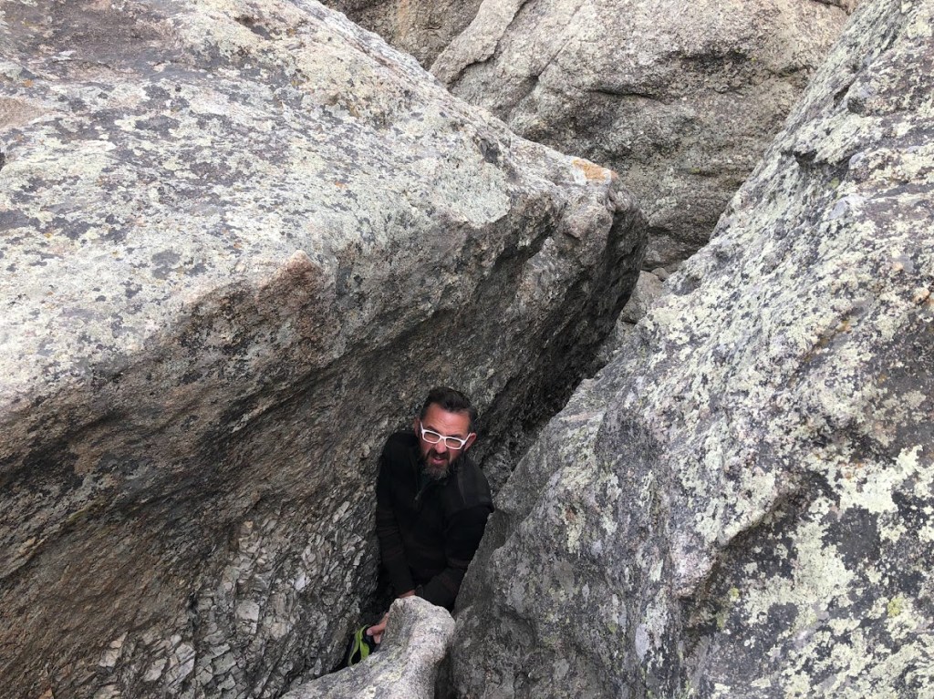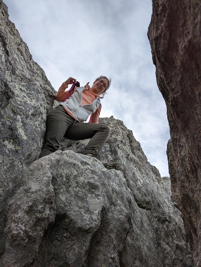 Victoriously emerging from the crack! But there are more rocks to go. From here, it’s mostly picking your way carefully over the uneven boulder surfaces, but if you want to make it to the very bald top, there’s at least one more bit of climbing to navigate.