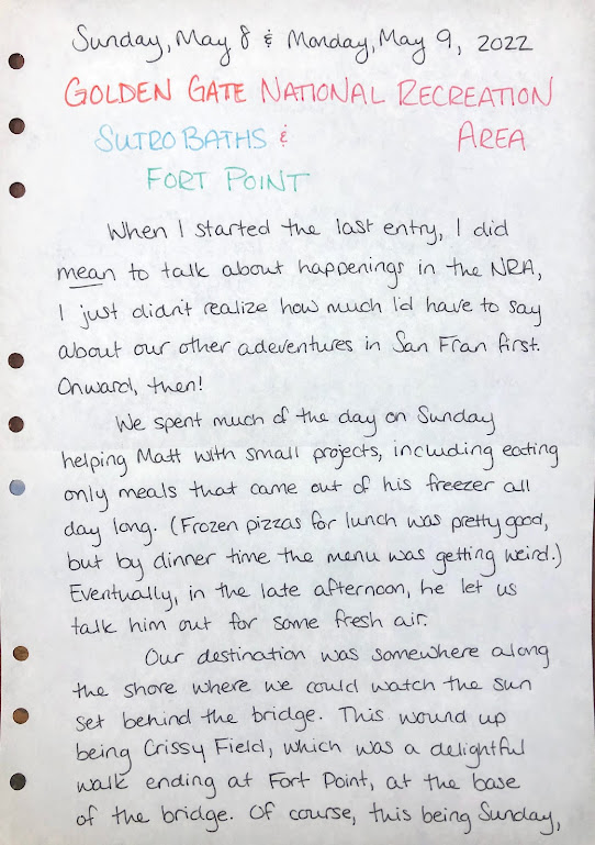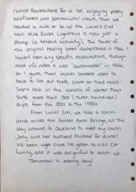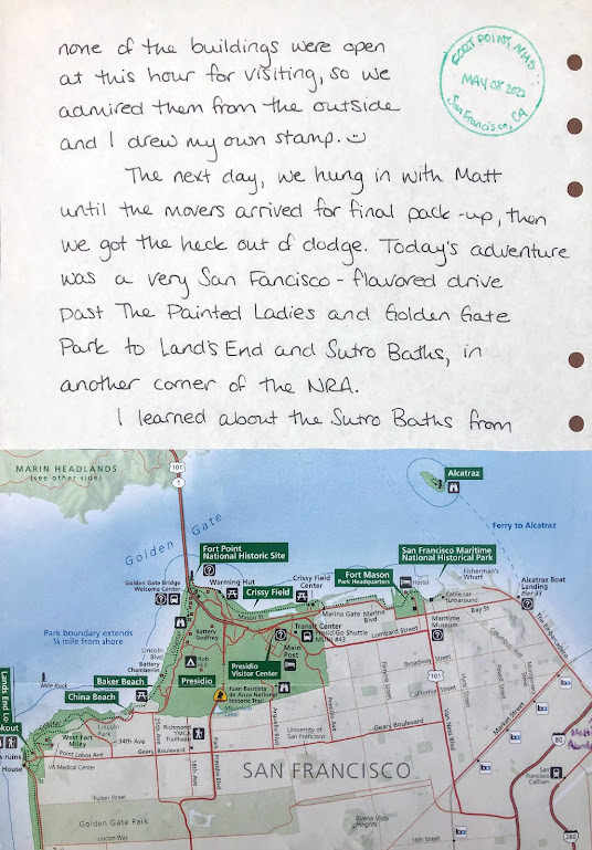 The next day, we hung in with Matt until the movers arrived for final pack-up, then we got the heck out of dodge. Today’s adventure was a very San Francisco-flavored drive past The Painted Ladies and Golden Gate Park to Land’s End and Sutro Baths, in another corner of the NRA.