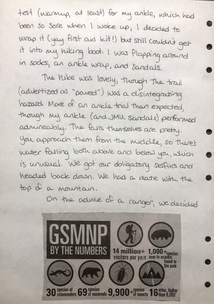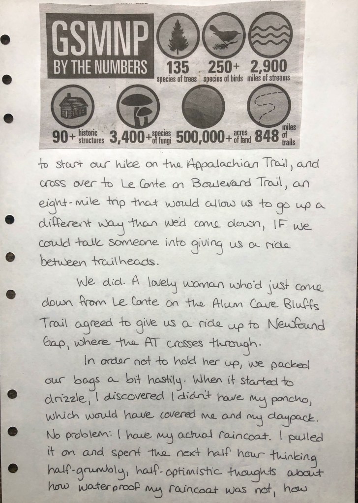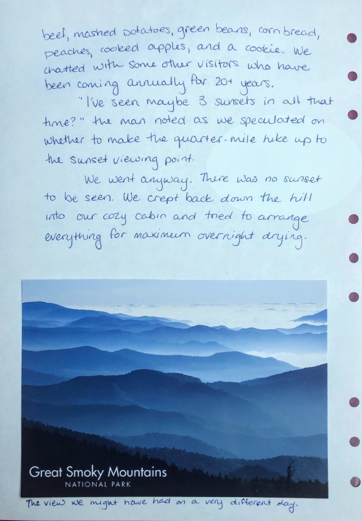 Transcription of journal page photos can be found below. A more traditional blogpost of this hike can be found HERE along with lots of pictures.