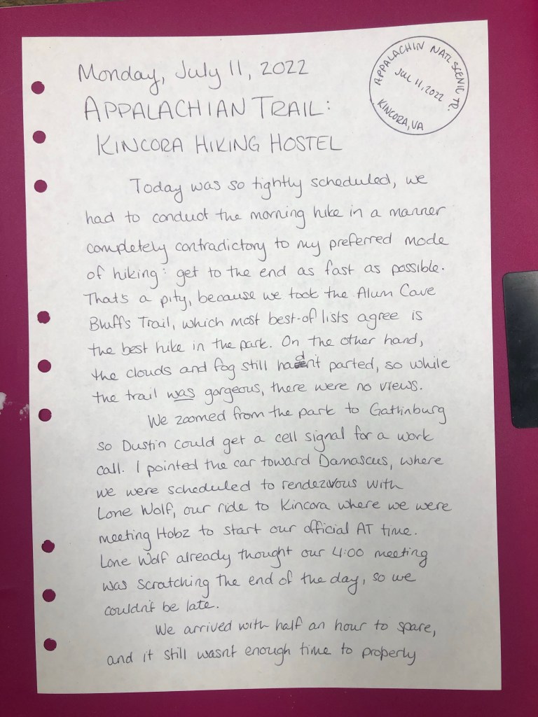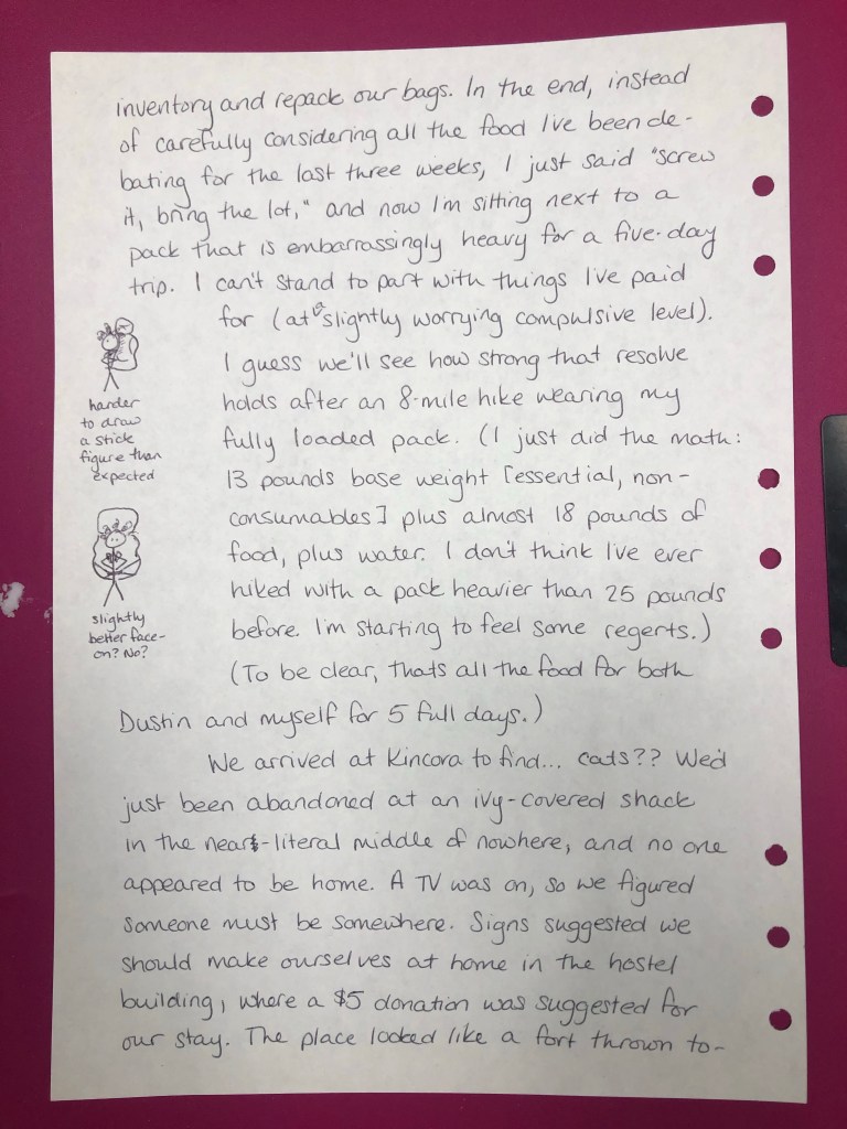 Transcription of journal page photos can be found below. A more traditional blogpost of this hike can be found HERE along with lots of pictures.