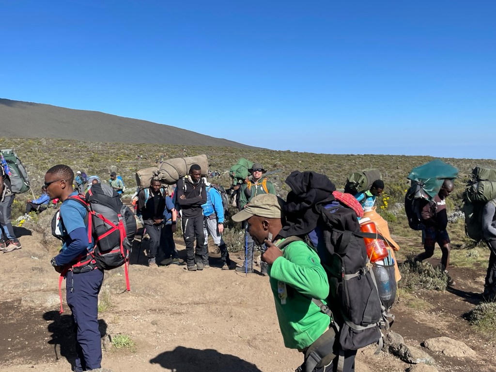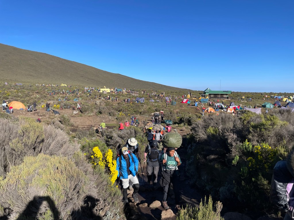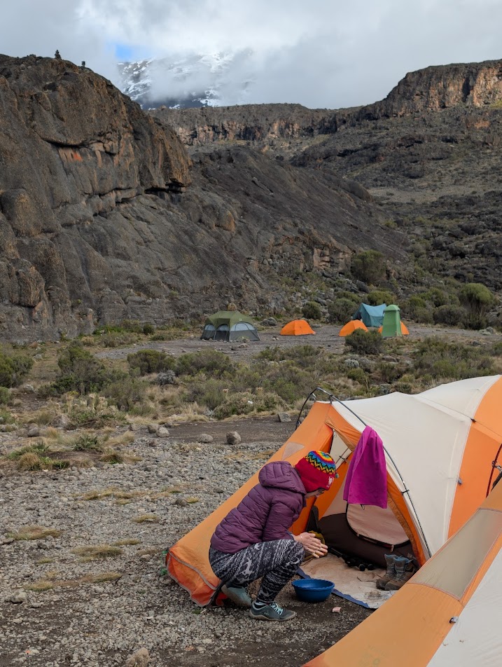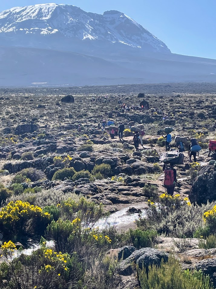 The crowd on the mountain fascinates me. The internet is cagey about how many people climb Kilimanjaro every year. You see the number 30,000 thrown around a lot, but I can’t find any proper stats anywhere to back that up. Let’s assume 30,000 is in the ballpark, and that the vast majority climb during the dry season, which is concentrated over 4 months. That’s as many as 250 clients plus their crews climbing every day. That’s a lot of people every day. 1,500 people, maybe? And we’ve come during an especially crowded time. So maybe 2,000? There are seven routs up, which is to say, seven different starting points, but they all end in the same place. Tomorrow, our Lemosho route will begin to converge with other routes.