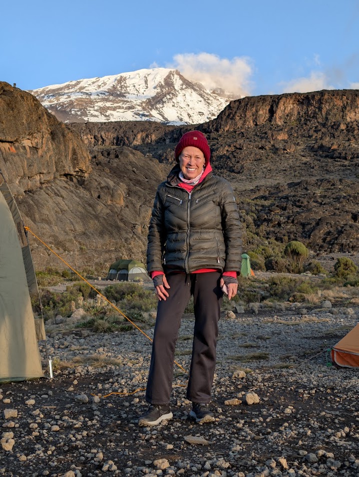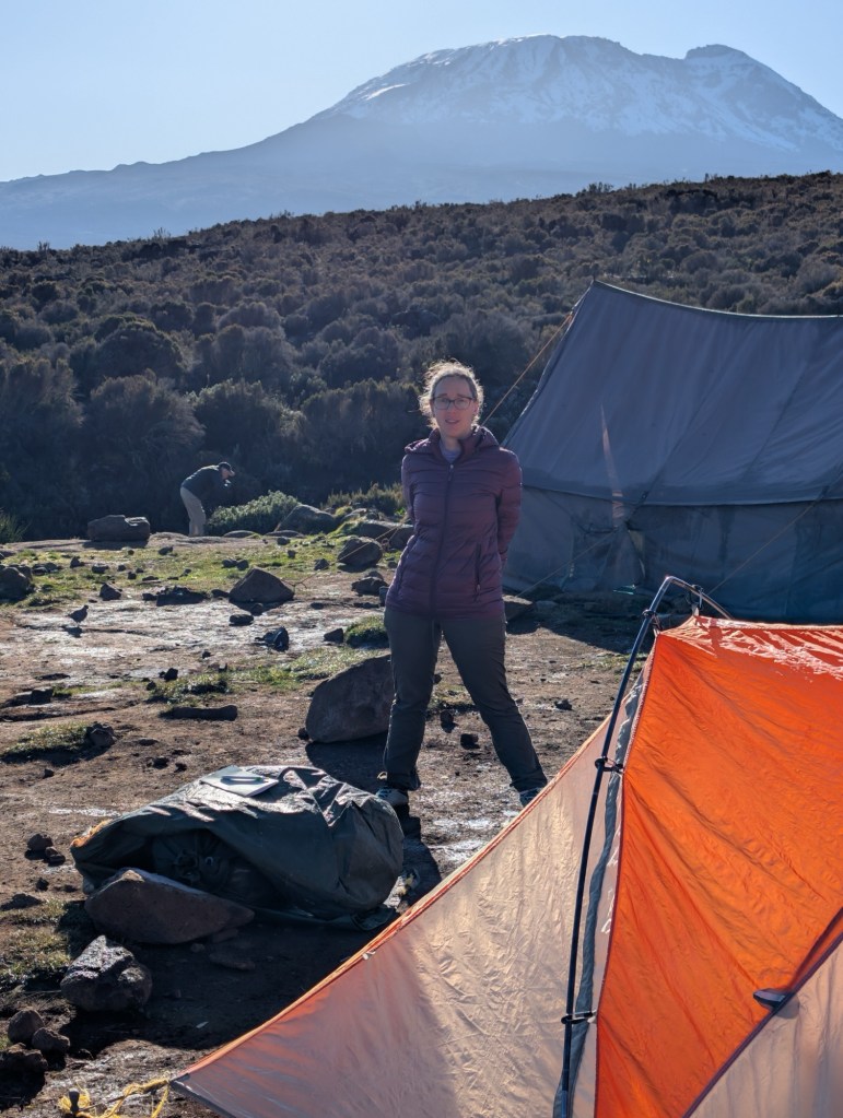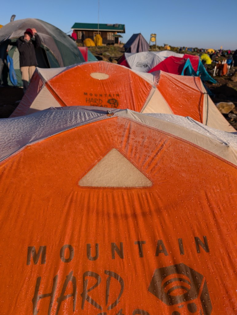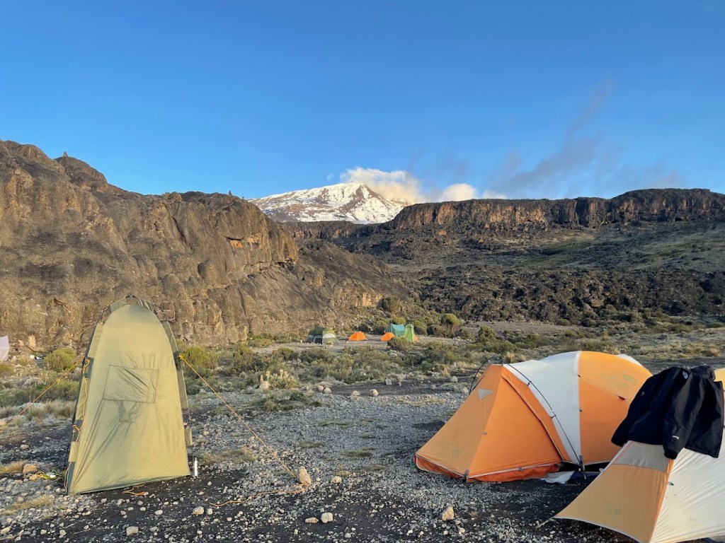 As a lovely after-dinner treat, the sun came out and the clouds cleared off Kibo peak behind us.