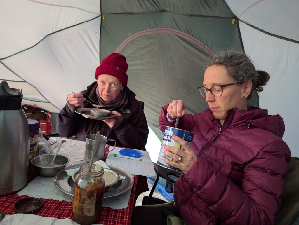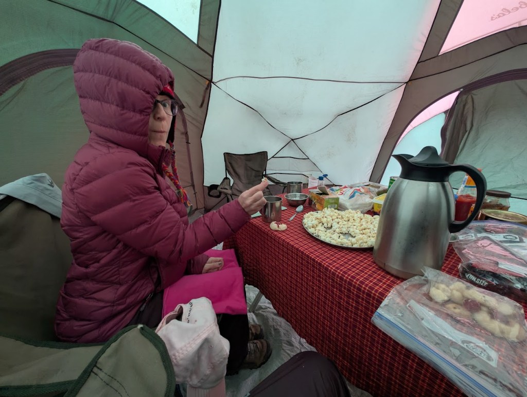 “Good timing,” we congratulated ourselves as we sat down in our cozy dining tent. At least now, if we needed to put on rain gear, we would start with dry clothing underneath.