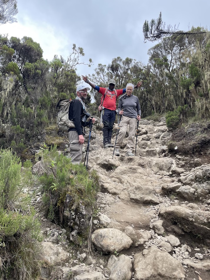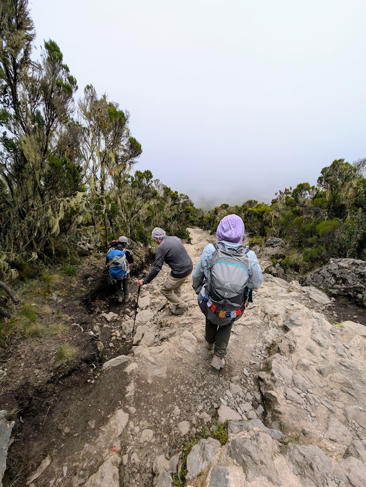 The descent felt fairly gentle until we got to Millennium Camp, around 12,500 feet, at which point the trail occasionally took staircase-style downward plunges on rocky paths that have been cemented together to prevent the rains from washing them out. Sometimes, deep channels ran along either side where the rains have taken out their fury instead.