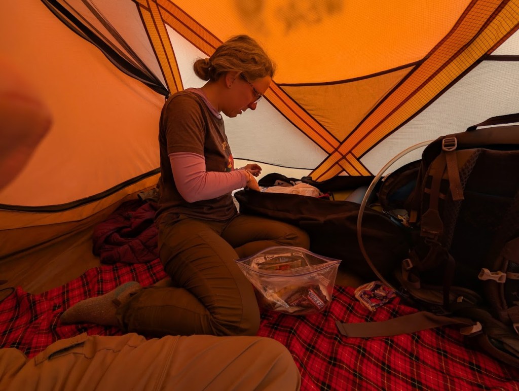 Ten and a half hours of sleep would have been nicer if the wind hadn’t started blowing, and if my body hadn’t decided to punish me for the hubris of thinking I could eat again last night. I had to get up twice, and let me tell you that leaving a cozy tent for a gale-filled, sub-freezing night was less than enticing.