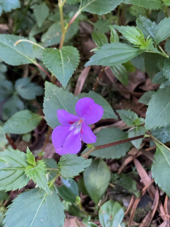 I spent most of the last day taking pictures of wildlife, as it had once again become abundant. I couldn’t get over how many brand new plants I was seeing, that I’d never seen before in my life, and also how many plants I recognized from visiting greenhouses in South Dakota. Plants they sell as summer annuals grew wild here in the rainforest. Bushes of impantiens. Morning glories and nasturtiums climbing up giant ferns. Those fuzzy little purple guys.