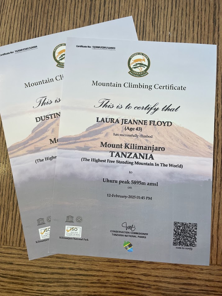 Oh. That’s a much less funny mental image. If someone needs to be rushed down the mountain and can’t go on their own two feet, even with help, a helicopter is always be the fastest, safest option. But sometimes helicopters can’t come, because of weather or – God forbid – too much demand. We’d seen or heard more than a dozen helicopters coming and going during our days on the mountain. Thank goodness we’d all climbed the mountain with respect, pole pole, and could bring ourselves down on our own two feet.