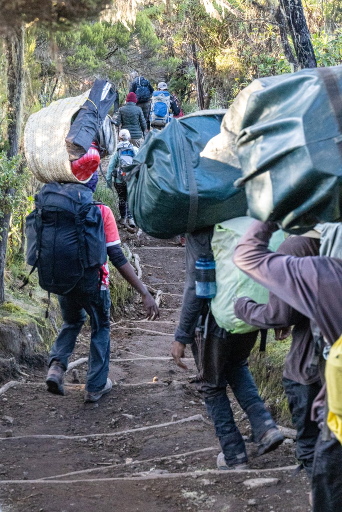 We started our last day’s hike on the early side, to try and get ahead of a little of the traffic that would be checking out at the Mweka Gate throughout the day. There are seven trailheads you can use to start your journey up Kilimanjaro, but only two that bring you back down, and Mweka is the more heavily trafficked. I’ve totally lost a grip on my mountain-traffic math by now, but I can tell you, the number of bodies filtering down today was quite immense.